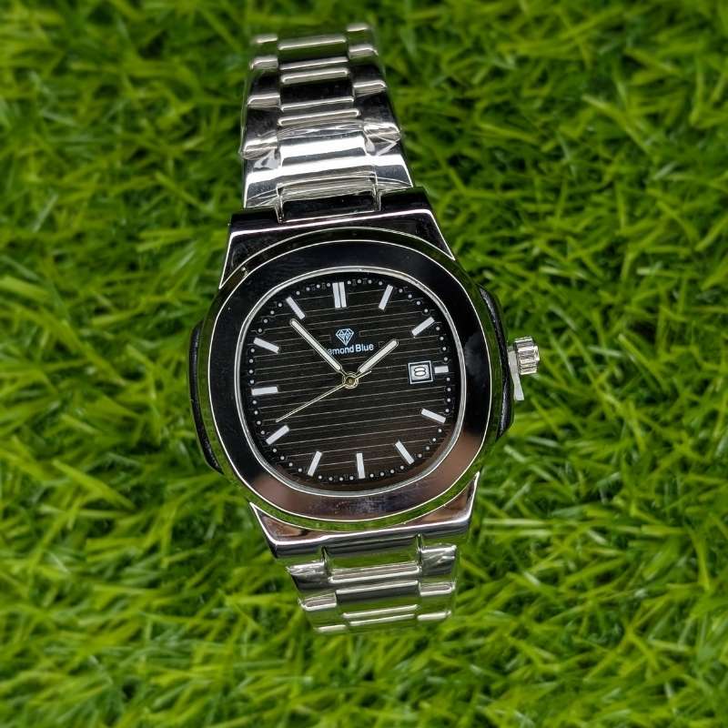 Diamond Blue Watch Black Dial Silver Chain
