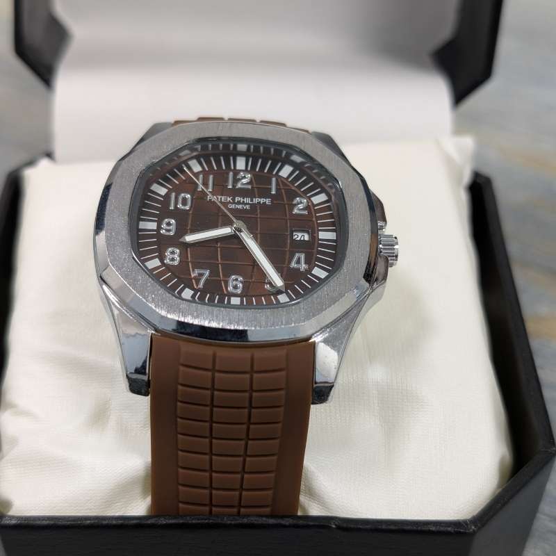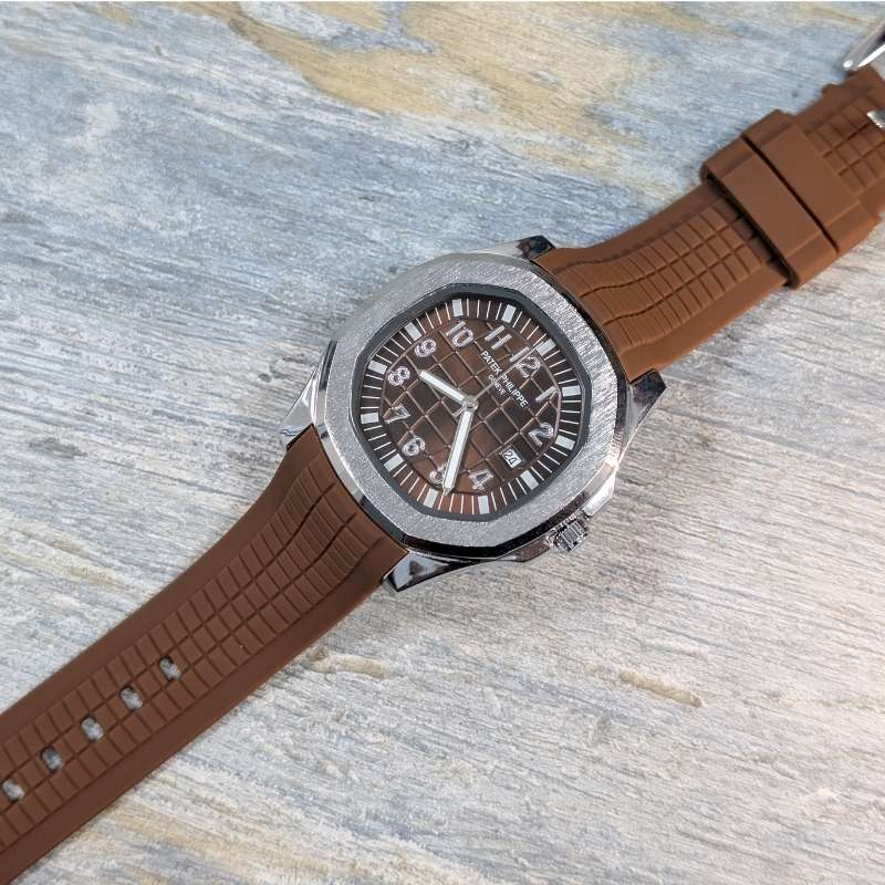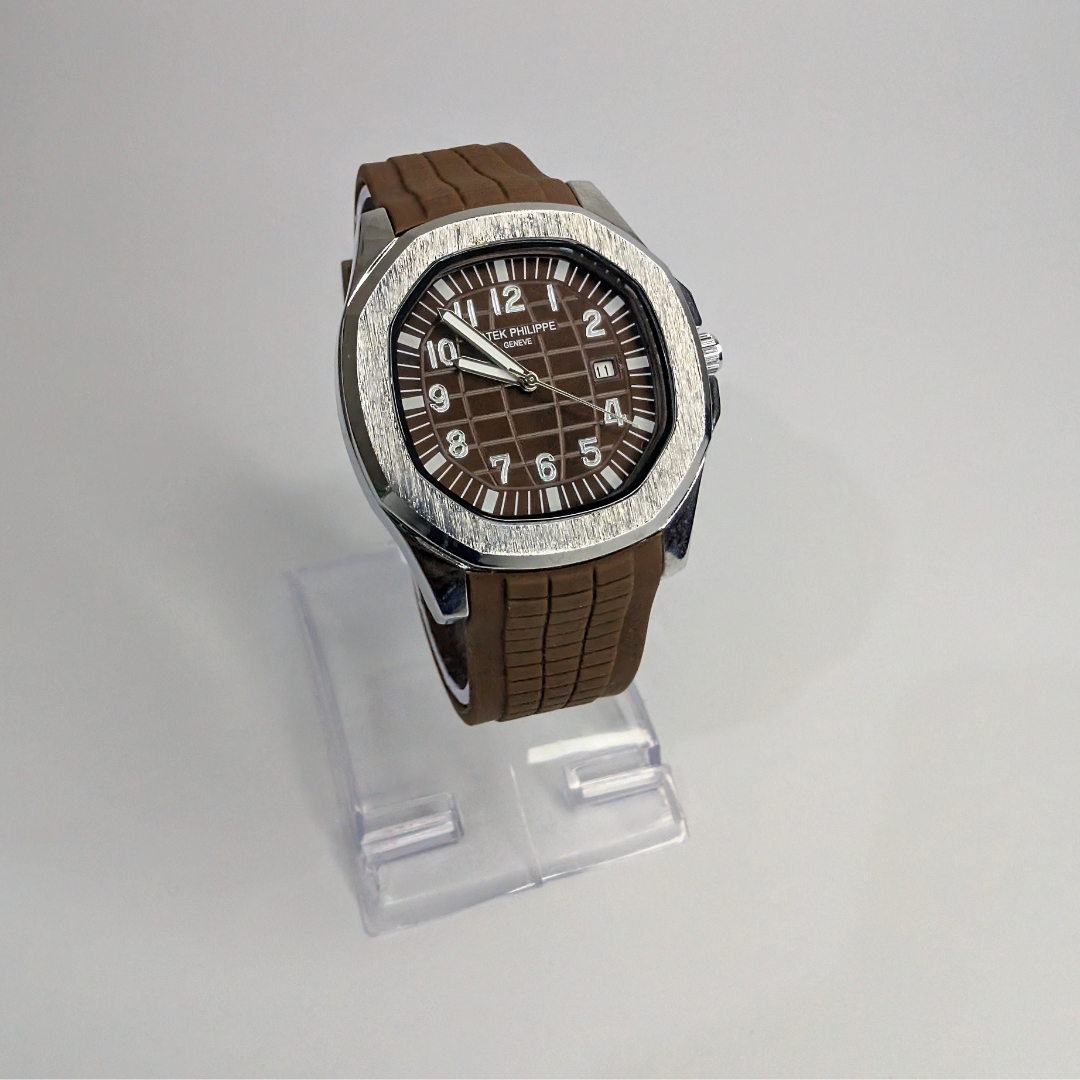Patek Philippe Brown Silicon Strap Watch with Quartz Dial