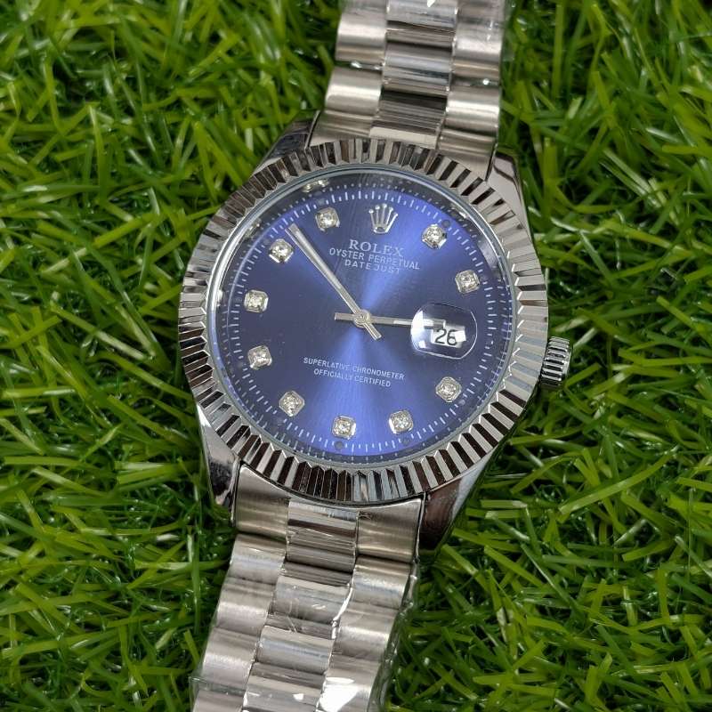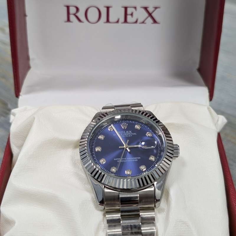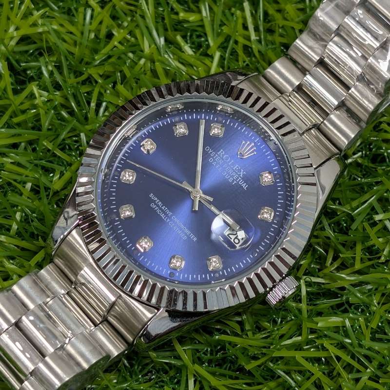 Ultimately, the Rolex Silver Chain Blue Dial Watch embodies a balance of tradition and modern design. It is more than just a functional timepiece—it is a reflection of individuality, refinement, and status. A true companion for the modern man, this Rolex ensures you stand out with every glance.