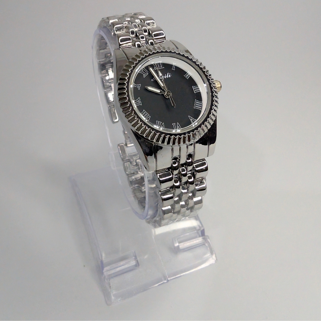 Whether you’re dressing for a meeting, a dinner, or simply elevating everyday wear, the Silver Chain Ladies Watch – Black Dial Round Edition is the perfect accessory to express style and confidence.