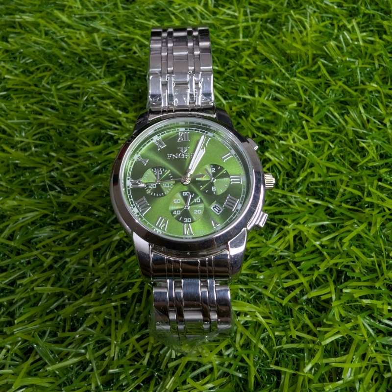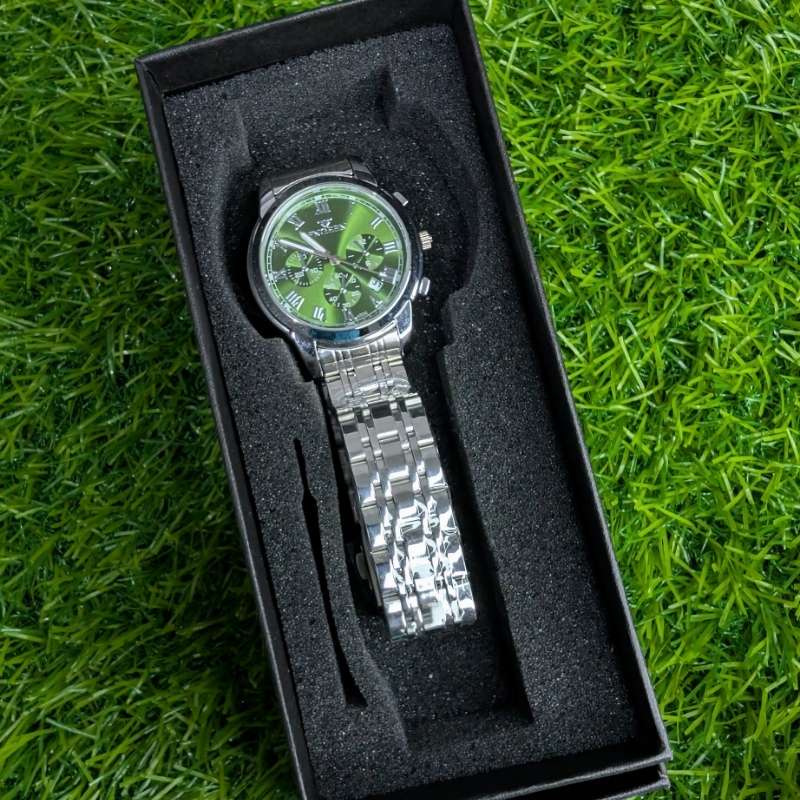 The silver chain bracelet offers a refined, timeless look that pairs seamlessly with professional, formal, or casual outfits. In contrast, the green dial adds a vibrant and refreshing touch, setting this watch apart from ordinary designs. This combination ensures you’ll always have a piece that captures attention and complements your style, no matter the occasion.