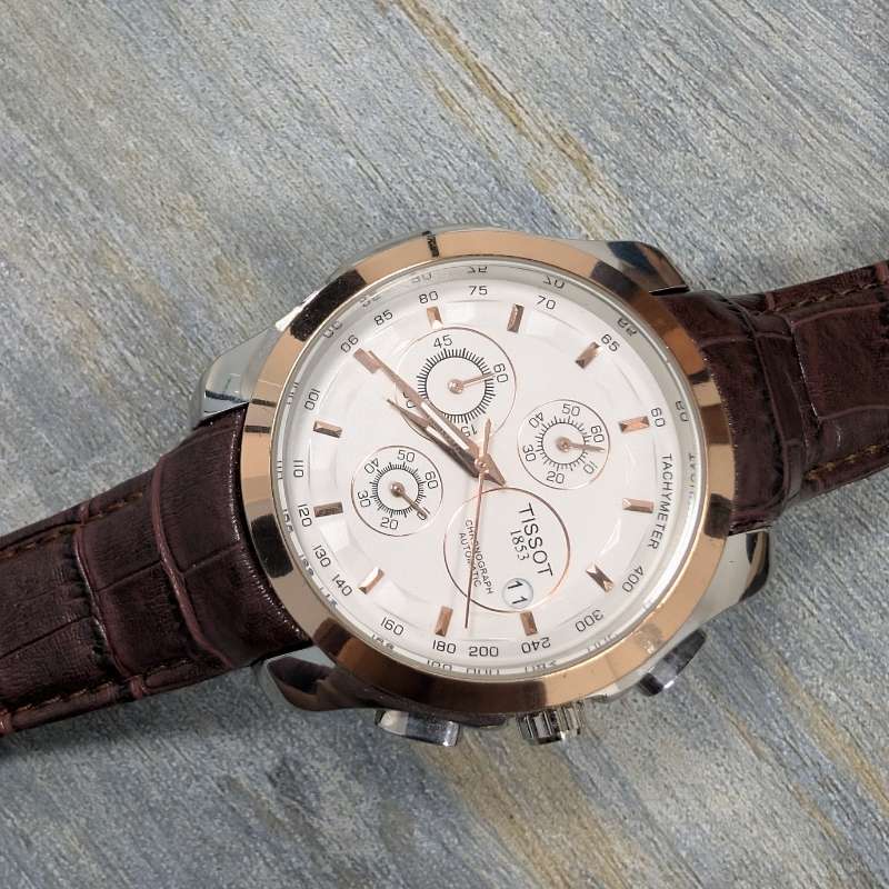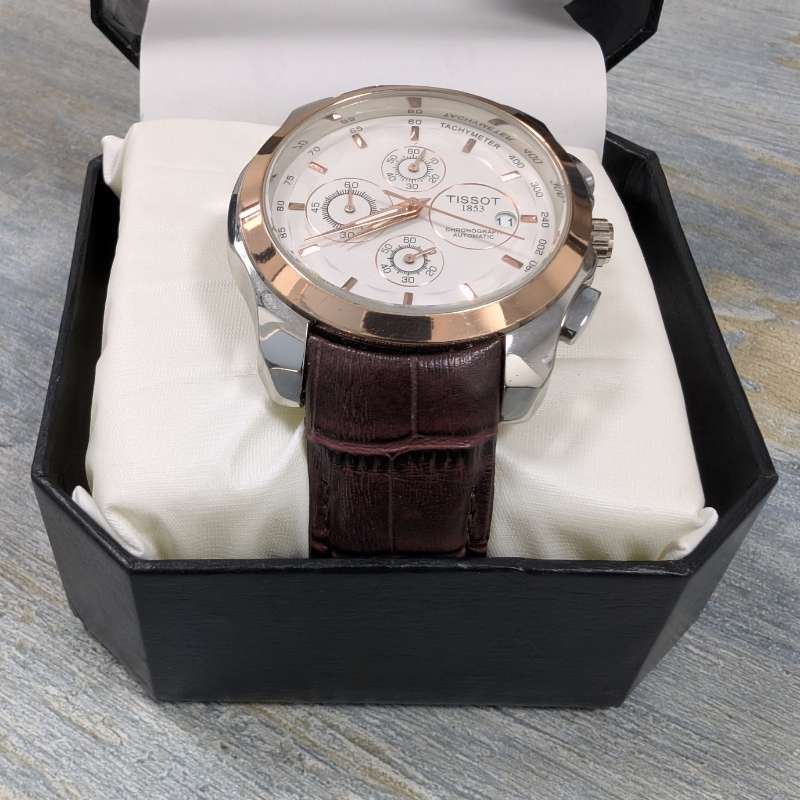 With its combination of modern technology and classic aesthetics, the Tissot Brown Leather Chronograph Watch – White Dial Edition is more than a timepiece—it’s a statement of elegance, precision, and confidence.